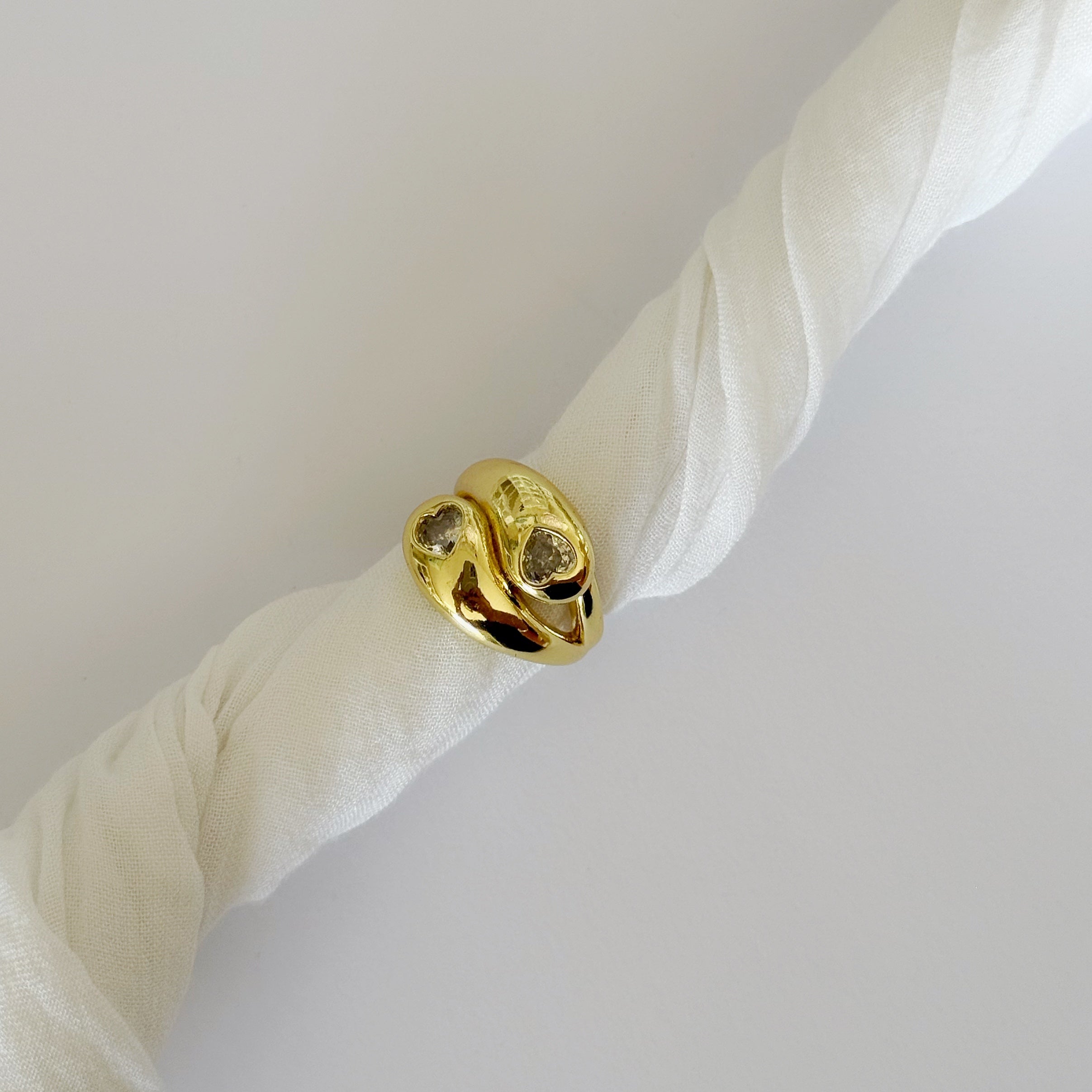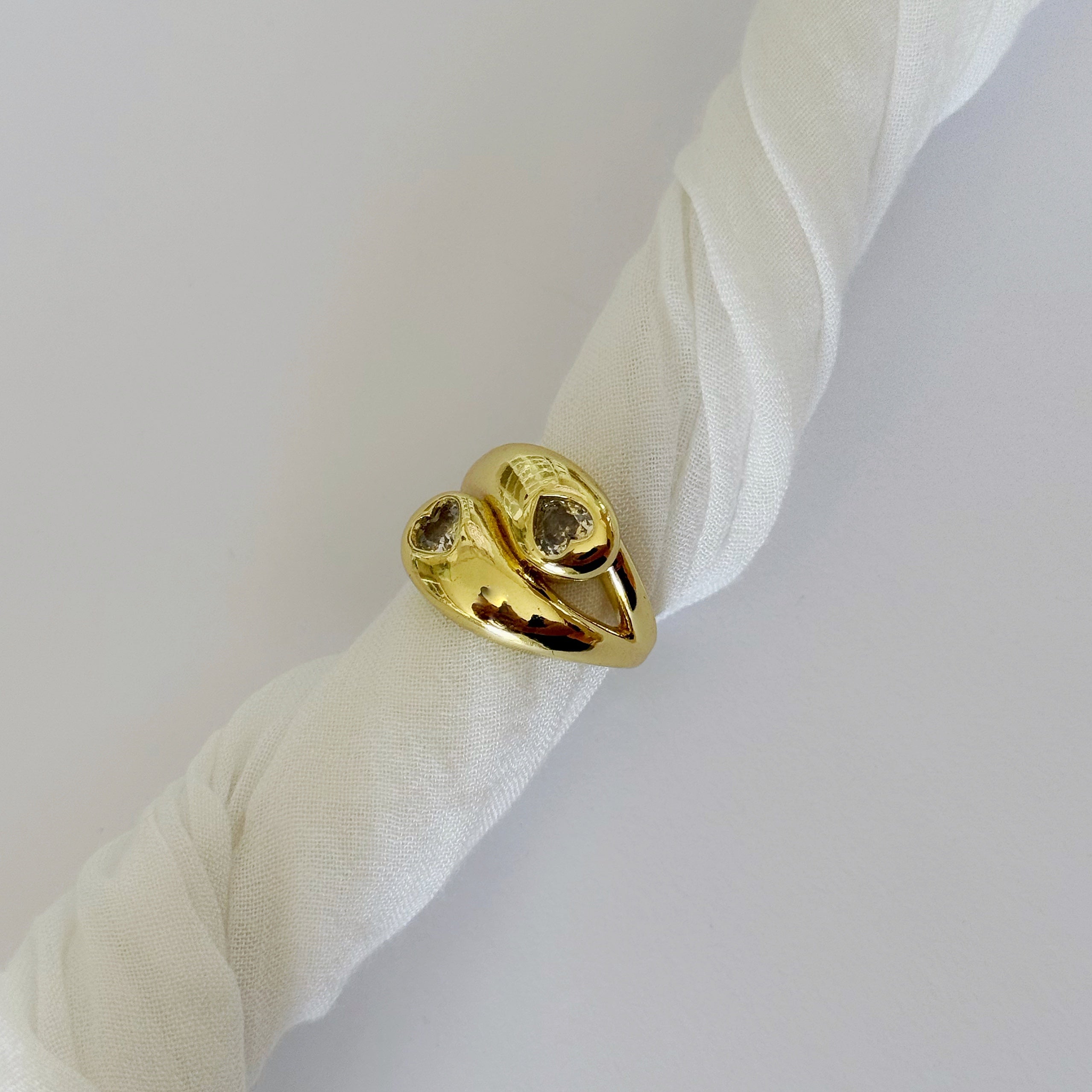 Anillo en forma de gotas doble con mini zirconias en forma de corazón