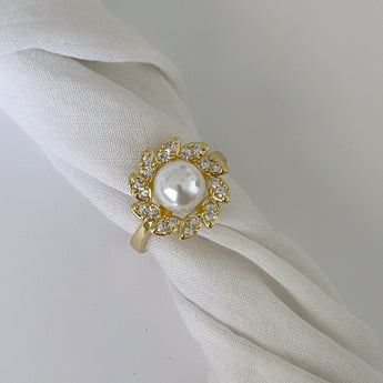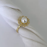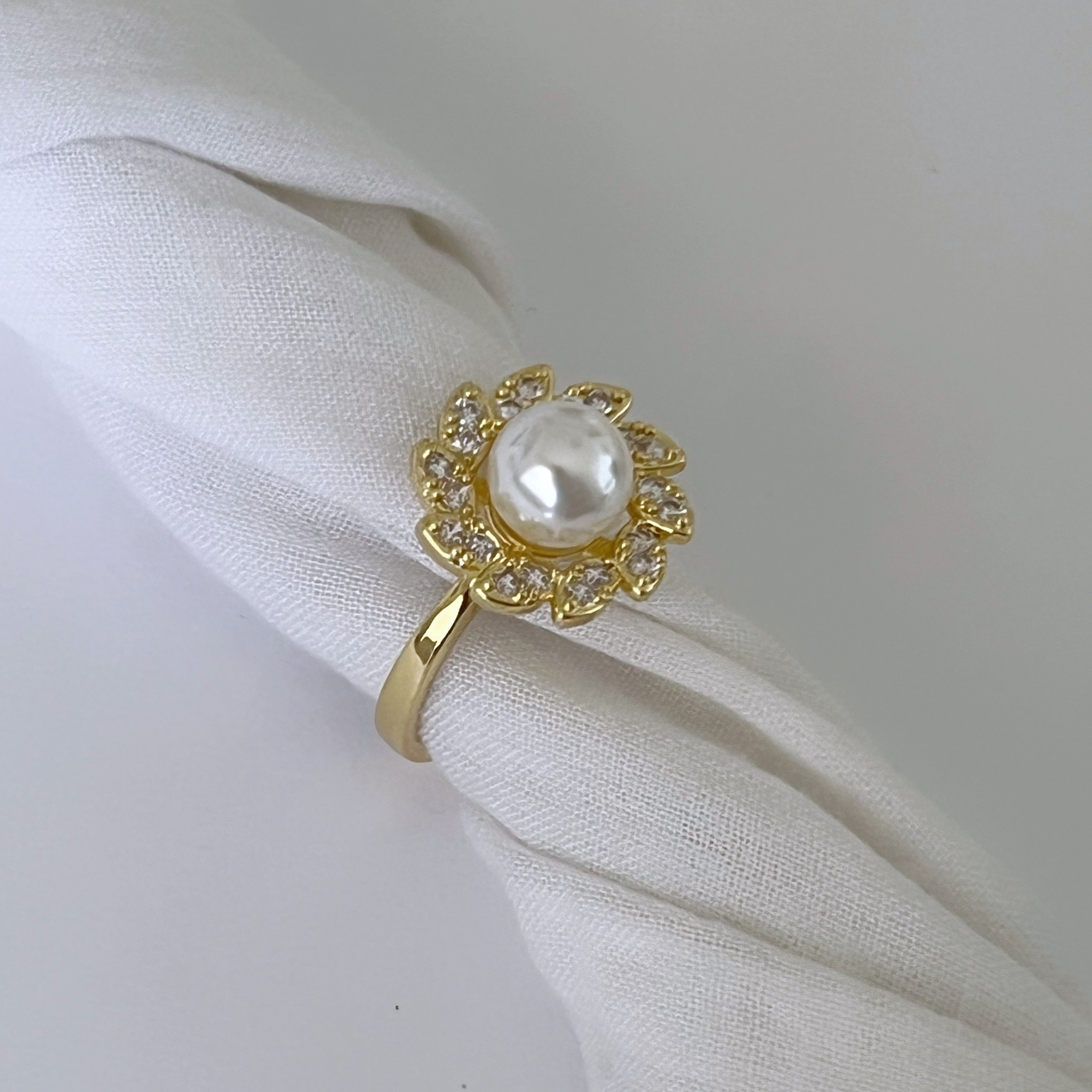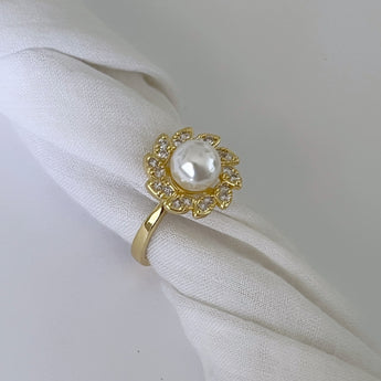 Anillo con forma de flor con una perla al centro