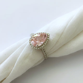 Anillo de plata con zirconia rosa en forma de gota