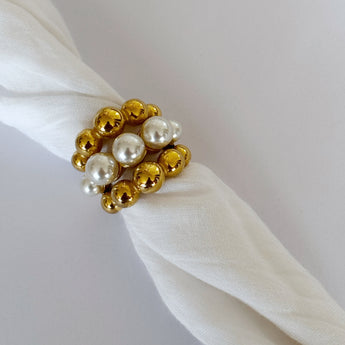 Golden Pearl Stack combina la elegancia atemporal de las perlas con el brillo moderno de esferas doradas, creando un diseño sofisticado y lleno de personalidad.