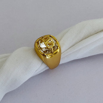 Nuevo anillo dupe Valentino, con una piedra de zirconia grande al centro y el logo V en el centro.
