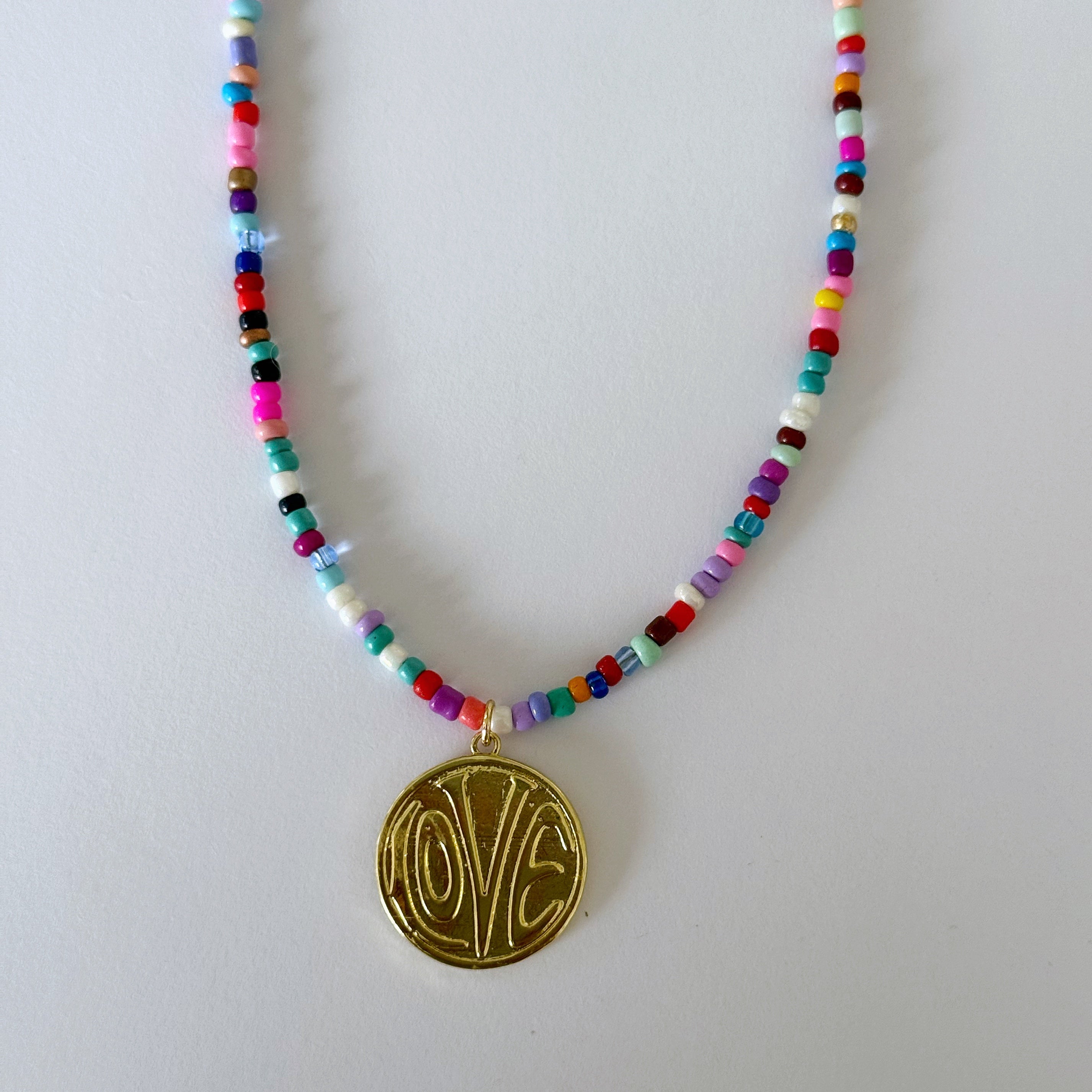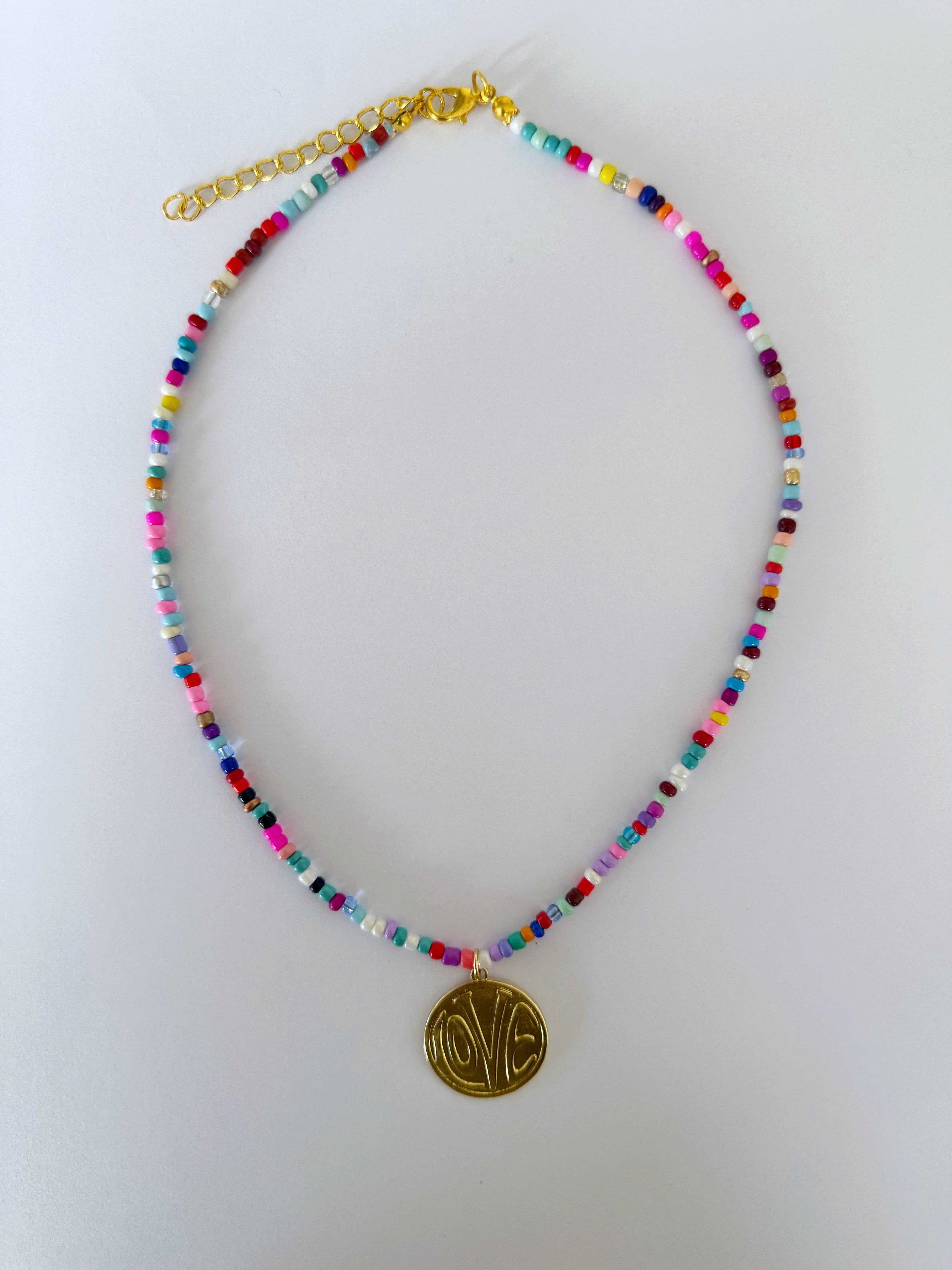 Nuevo collar de chaquiras de colores con un dije dorado que le da el toque increíble a esta lindo collar