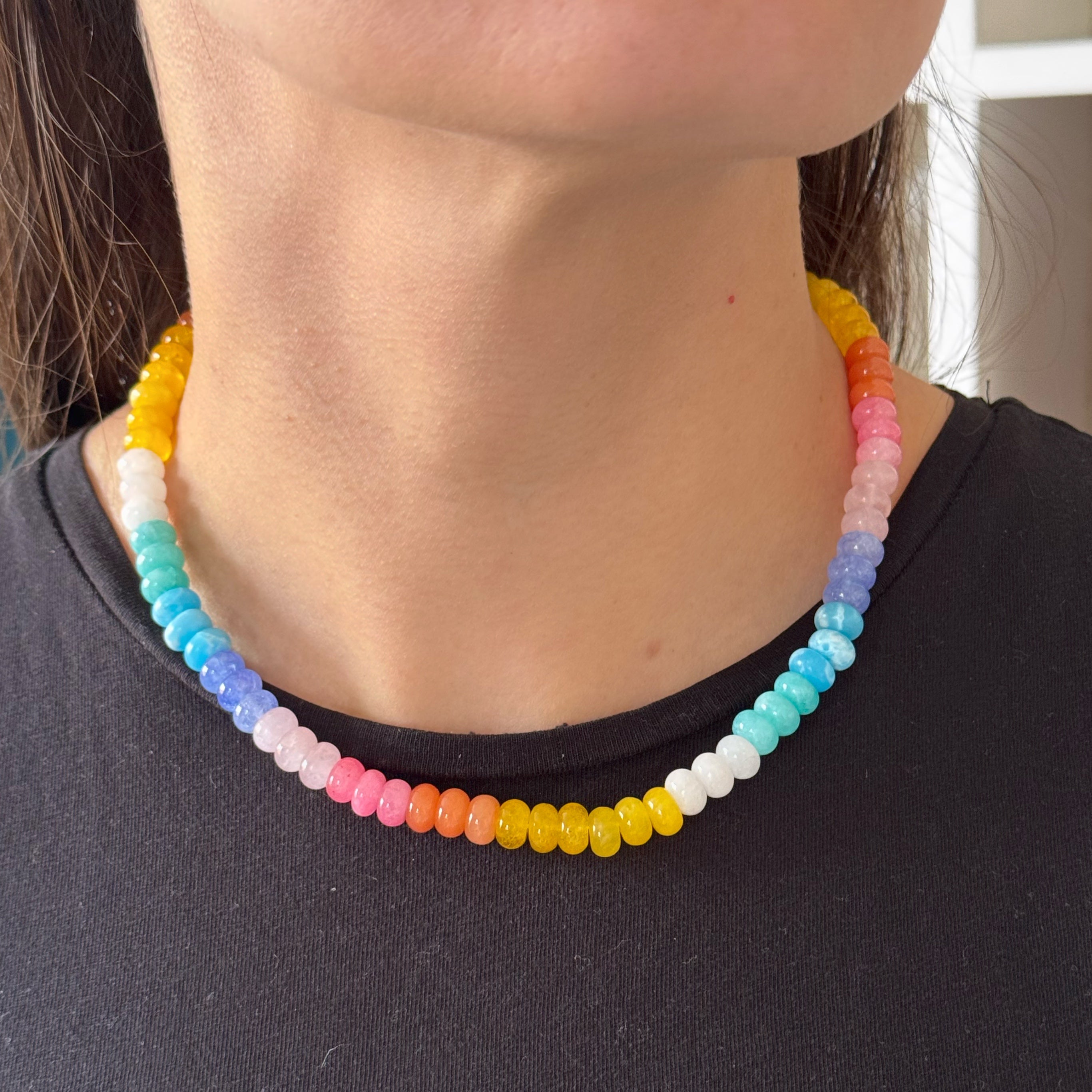 Agrega un dulce detalle a tu layering con este collar de piedras en diferentes tonos, Atrevete a combinarlo con tus collares favoritos