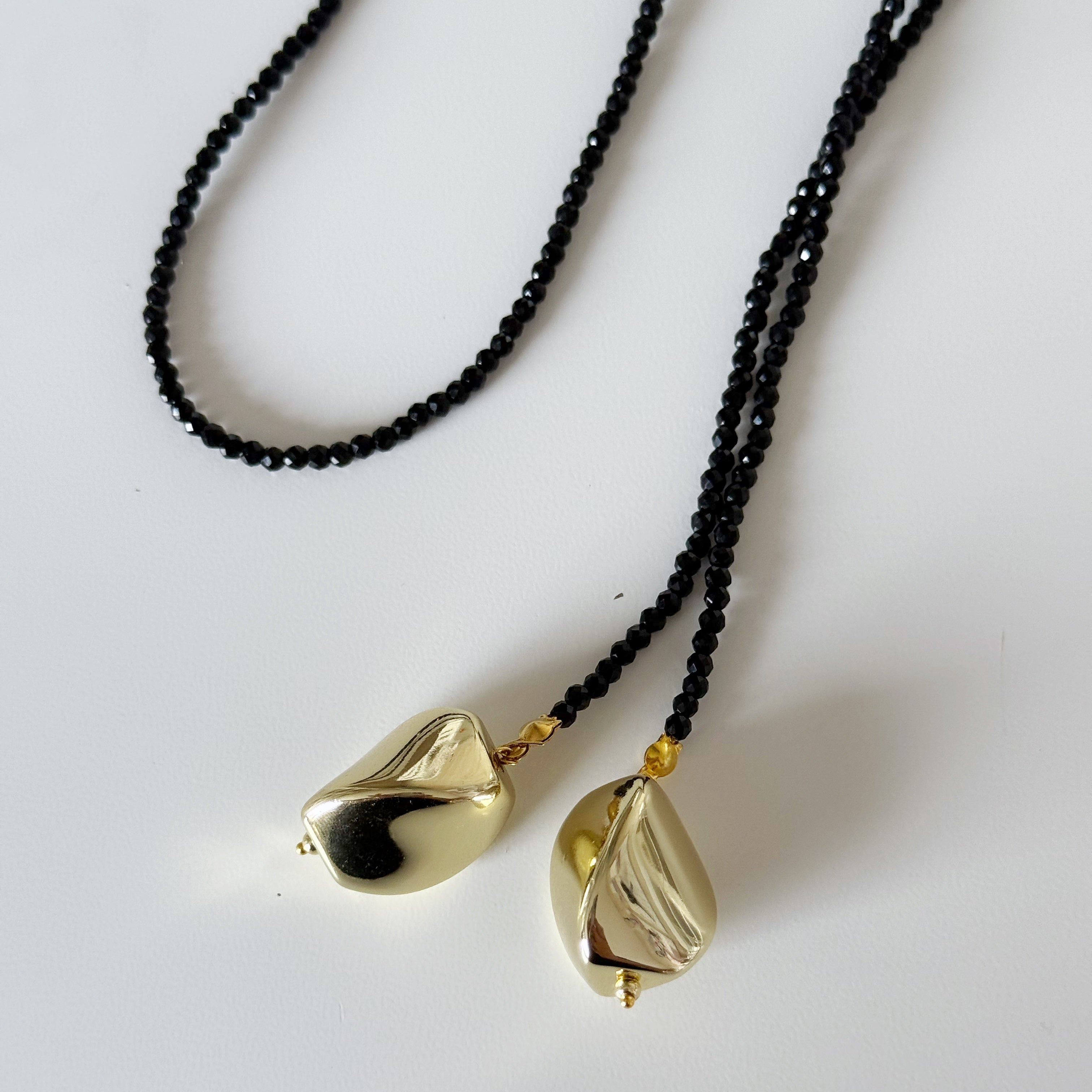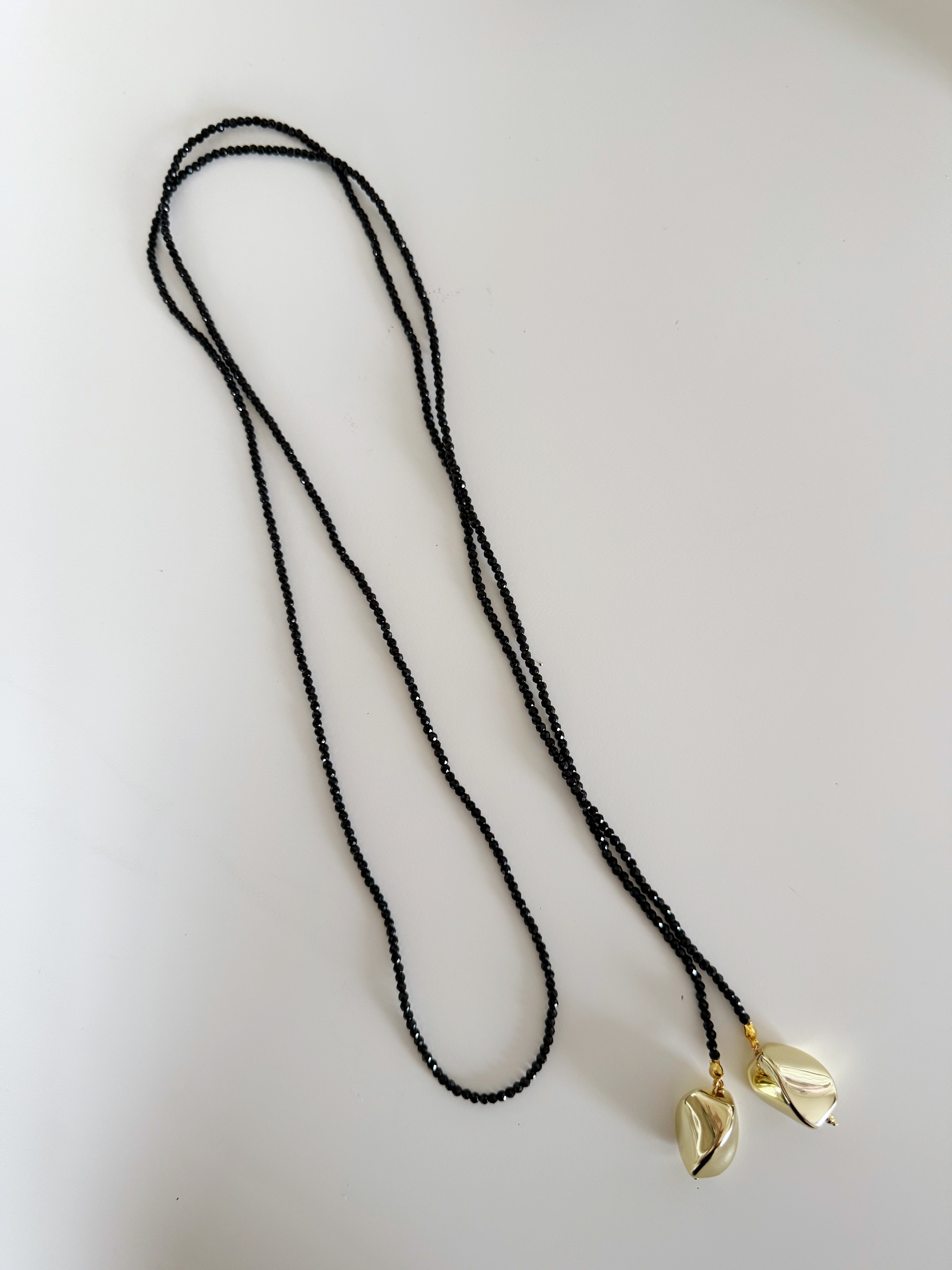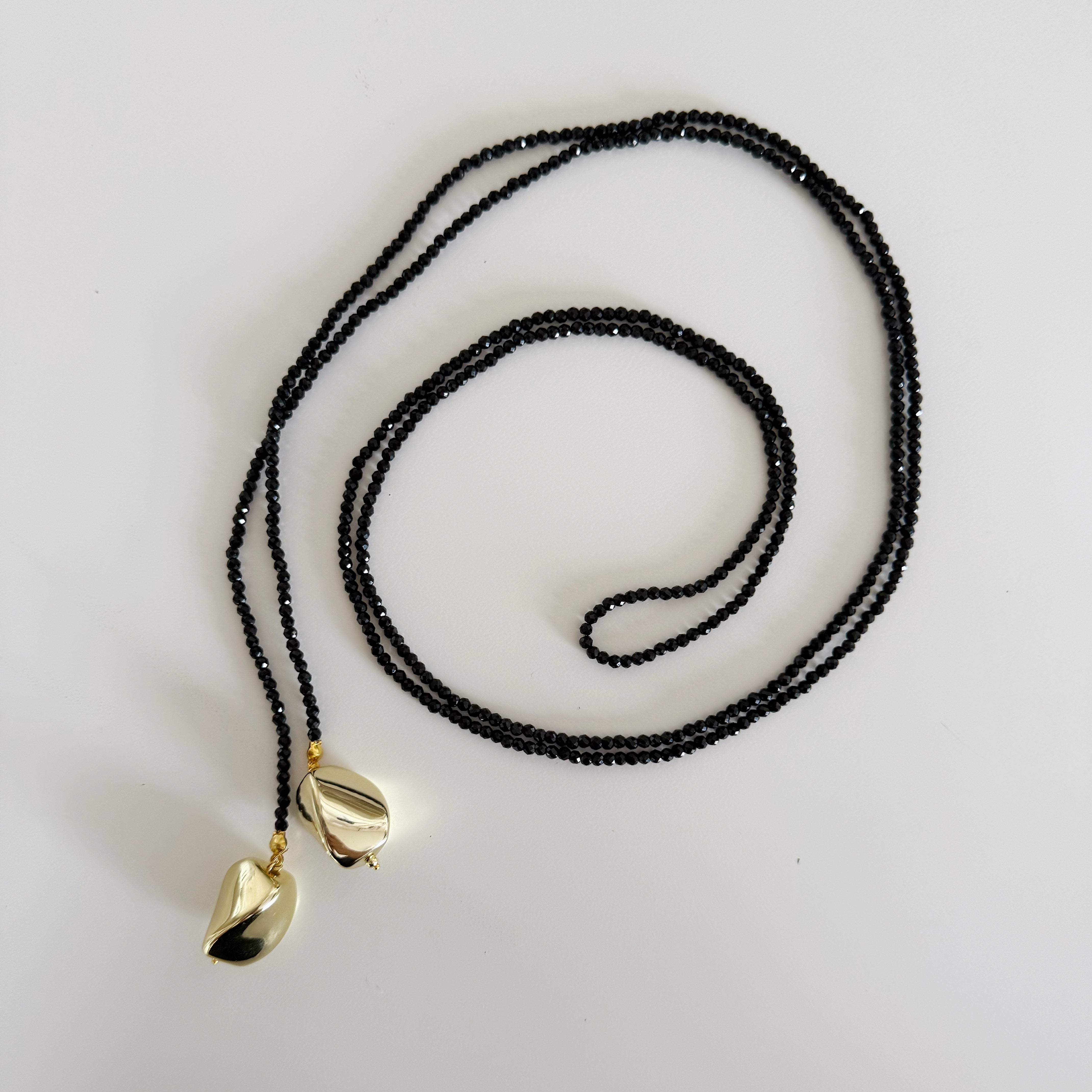 Nuevo collar hecho a mano con una tira larga de chaquiras y una piedra dorada en cada esquina. Múltiples formas de usarlo
