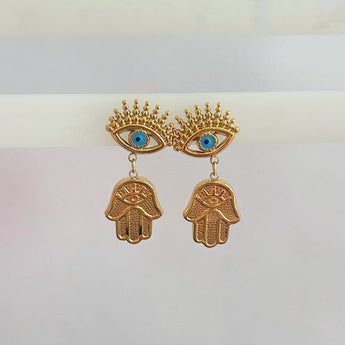 aretes con forma de ojo turco y mano de Fatima.