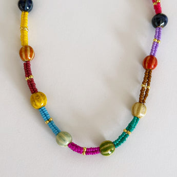 El Candy Beads Necklace combina cuentas de colores vibrantes con detalles dorados que aportan un toque chic y divertido. Cada pieza está cuidadosamente armada a mano, creando una explosión de energía que eleva cualquier look — desde jeans y camiseta hasta un outfit más elegante.