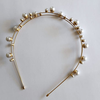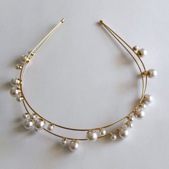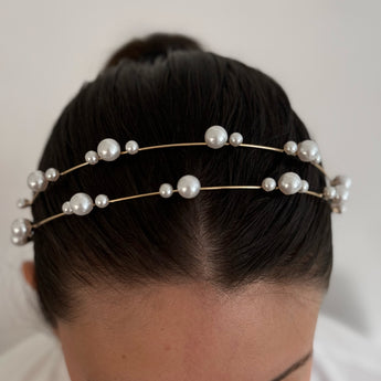 Nueva diadema doble en cruz con pelas de diferentes medidas
