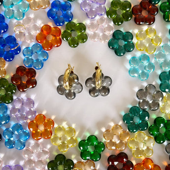 Te presentamos los nuevos hoops con una flor de acrílico en diferentes colores. Estamos seguras que no podrás escoger solo uno, amarás todos los colores