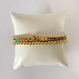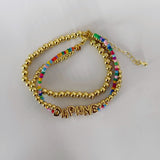 Material: cuentas y letras de acero inoxidable, chaquiras de resina
