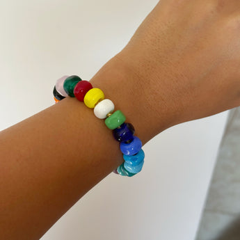 Nuestra Pulsera Color Dots Luxe está hecha con cuentas tipo murano en tonos vibrantes, para llevar contigo una energía alegre, creativa y llena de vida. Cada color cuenta una historia y se mezcla de forma única, haciendo que ninguna pulsera sea igual a otra.