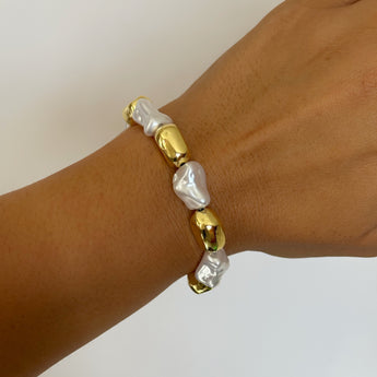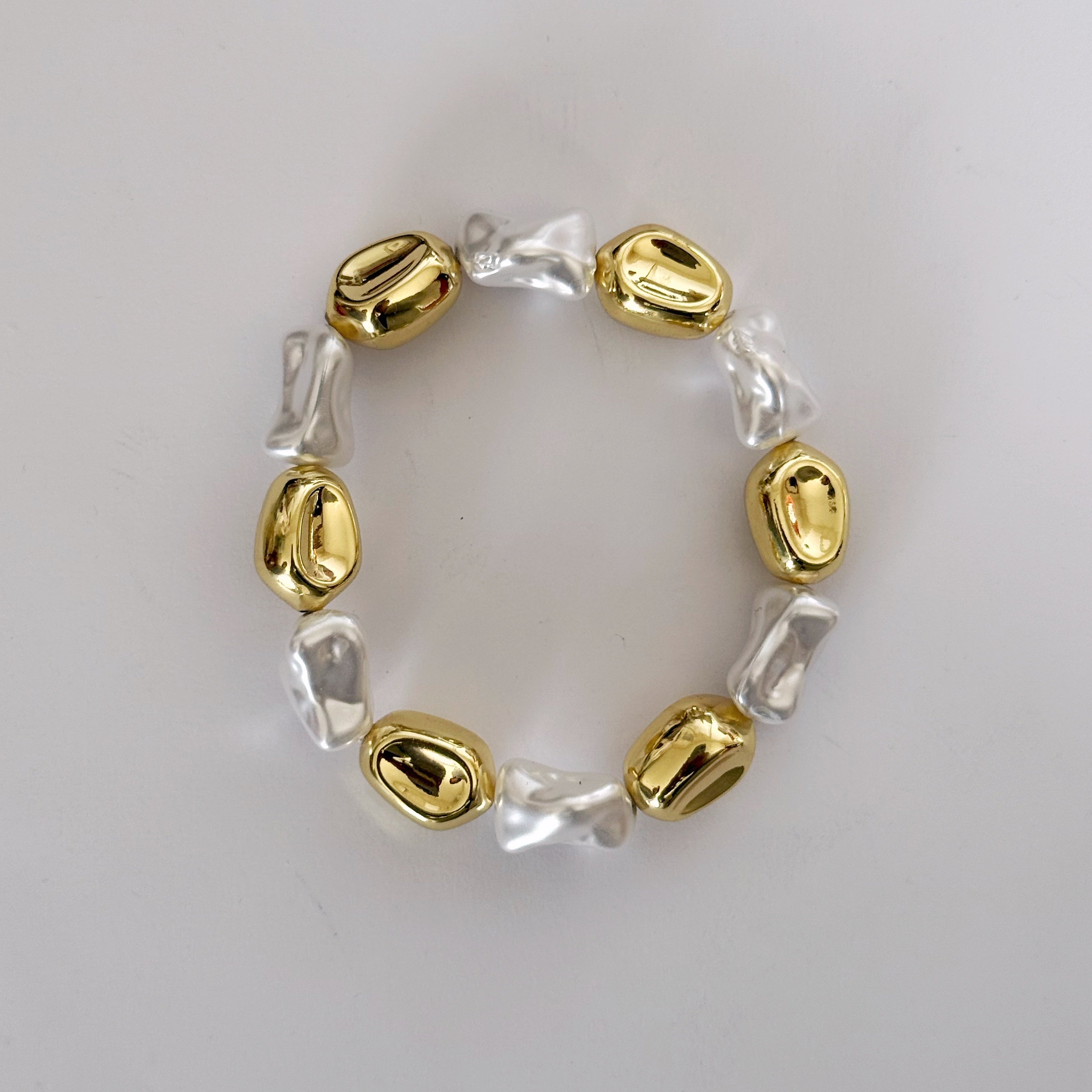 Pulsera de piezas irregulares crean un diseño moderno, elegante y muy versátil, ideal para elevar cualquier look, desde uno casual hasta uno más arreglado.