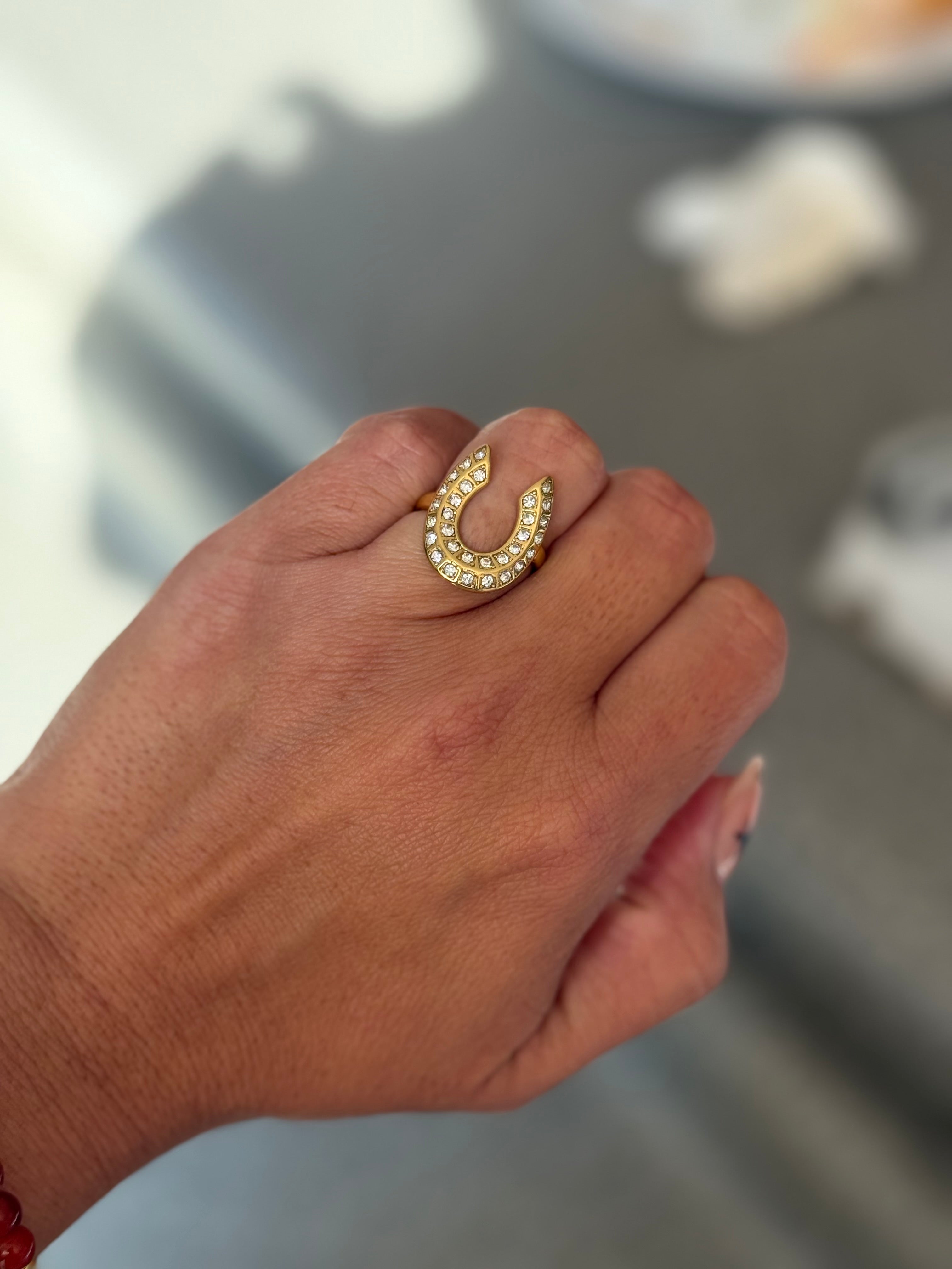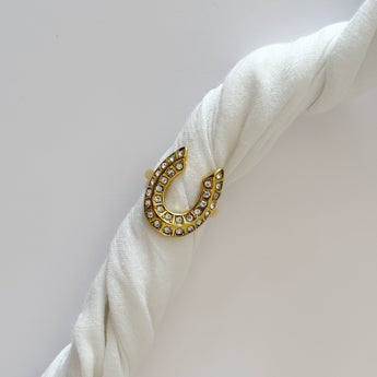 El anillo herradura Glow combina la silueta clásica de la herradura —símbolo de suerte y protección— con incrustaciones de cristales que capturan la luz desde cualquier ángulo. Su diseño abierto y curvo abraza el dedo con un look moderno, elegante y lleno de intención.